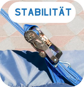 Stellen Sie sicher, dass der Artikel z.B. mittels Spanngurt sicher befestigt ist, sich auf der Palettegut ausbalanciert befindet und keine Gefahr des Umkippens besteht.
